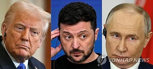 왼쪽부터 트럼프, 젤렌스키, 푸틴 |