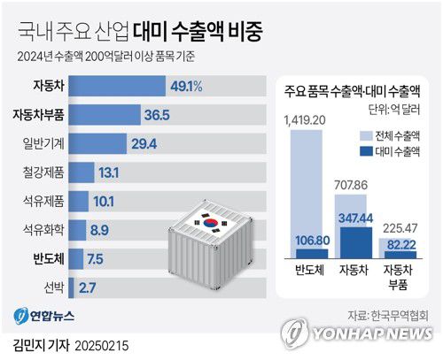 [그래픽] 국내 주요 산업 대미 수출액 비중 |