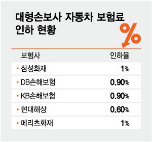 앞서 지난달 삼성화재와 메리츠화재는 1%, DB손해보험은 0.8%의 자동차 보험료 인하를 결정한 바 있다. 이로써 대형 손해보험사 5개 사 모두 올해 자동차 보험료 인하를 결정했다. 삼성화재, DB손해보험, 현대해상, KB손해보험 4개 사의 자동차보험 시장 점유율은 약 85%에 달한다. DB손해보험은 0.8% 인하로 1인당 보험료는 평균 7000원 낮아질 것으로 추산했다.
