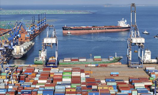 중국 동부 산둥성의 한 조선소 컨테이너 모습. AP연합뉴스 |