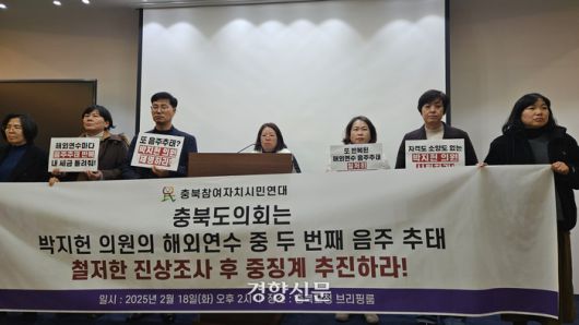 이들은 “해외연수는 엄연히 세금을 들여 떠나는 공무의 연장이지만 공식 일정 수행 중 음주 추태 의혹을 받는다는 것 자체가 도의원으로서 기본 자격이 없는 것”이라며 “충북도의회는 철저한 진상조사 후 박 의원을 강력히 징계해야 한다”고 요구했다.