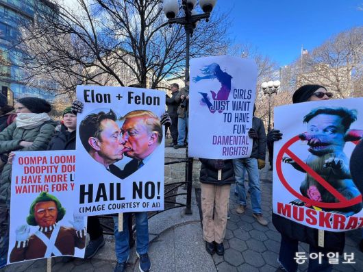 도널드 트럼프 미 대통령의 취임 한 달을 사흘 앞두고 벌어진 이날 ‘반(反)트럼프’ 시위는 뉴욕뿐 아니라 워싱턴과 보스턴, 애틀랜타 등 18개 주요 도시에서 열렸다. 뉴욕타임스(NYT)에 따르면 트럼프 행정부에 분노한 시민들이 미국 소셜미디어 레딧을 통해 동시다발적 시위를 조직했다. 연방정부 구조조정과 일론 머스크 정부효율부(DOGE) 수장 겸 테슬라 최고경영자(CEO)의 월권 논란 등이 도화선이었다.
