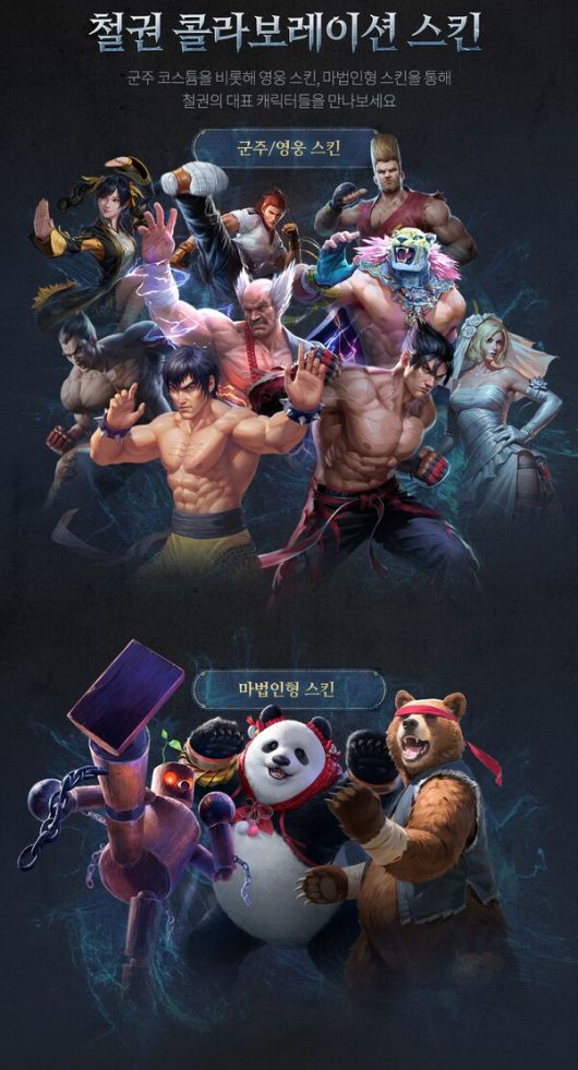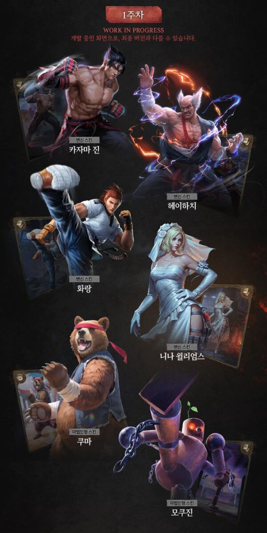 리니지W와 저니 오브 모나크에 카자마 진, 카즈야 미시마, 헤이하치, 샤오유, 폴 피닉스 등 철권 대표 캐릭터들이 스킨으로 등장한다.