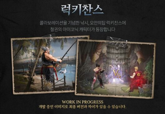컬래버레이션 기념 이벤트로는 철권 럭키코인을 이용해 다양한 철권 관련 보상을 획득할 수 있는 룰렛 이벤트와 오만의 탑, 낚시에서 철권의 아이코닉 캐릭터가 등장하는 럭키찬스 이벤트로 구성됐다. 이미지에서는 오만의 탑에서 대적하는 카자마 진과 폴 피닉스, 낚시를 하는 헤이하치를 확인할 수 있다.
