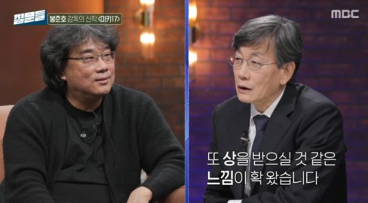 18일 밤 9시에 방송된 MBC 프로그램 ‘손석희의 질문들’에는 앵커 손석희와 영화감독 봉준호가 만나 대화를 나누는 모습이 그려졌다.