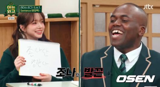 민니는 "존X 망함"이라고 솔직하게 적어 주위를 웃음을 자아냈다. 츠키 역시 "정말 망한다"라고 동일한 뜻을 적어 주위를 폭소케 했다. 이날 정답은 조나단이 맞췄다. 붐은 문장력 우수 학생으로 조나단을 선택했다.