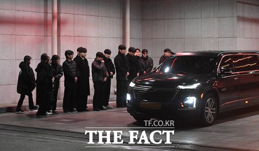 [더팩트ㅣ장윤석 기자] 배우 김새론의 발인이 19일 오전 서울 송파구 서울아산병원 장례식장에서 엄수된 가운데 고인의 지인들이 운구하고 있다.
