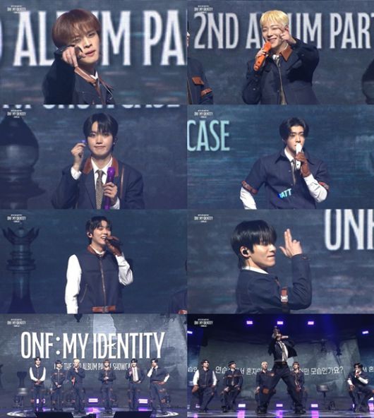 온앤오프는 지난 18일 서울 용산구 블루스퀘어 마스터카드 홀에서 정규 2집 Part.1 'ONF:MY IDENTITY' 발매 기념 팬 쇼케이스를 개최했다. 더욱 많은 팬들과 함께하고자 이번 팬 쇼케이스는 온·오프라인으로 동시 진행됐다.