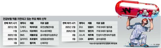 노바티스의 비소세포폐암 치료제 ‘타브렉타정’ 역시 2021년 11월 품목허가 이후 건강보험 적용이 안 되고 있다. BMS의 수혈 의존성 골수형성이상증후군 치료제 ‘레블로질주’, MSD의 신세포암 치료제 ‘웰리렉정’ 역시 2~3년 급여 적용을 기다리고 있는 신약들이다.