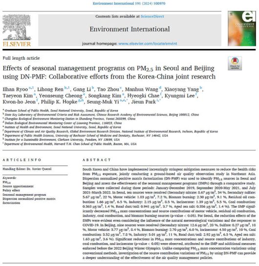 이 데이터는 중국 생태환경부 자료인데요, 중국 국내 데이터라 의심스러운가요? 한·중 공동 연구 사례로 따져보죠. 서울대 이승묵 교수 연구팀과 중국 과학원이 공동으로 연구해 국제저널 EI(Environment International)에 지난해 8월 게재된 연구 결과가 있습니다.