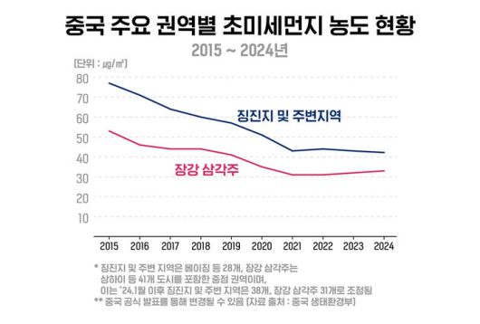 2024년 중국 징진지 연평균 초미세먼지 농도 42.2㎍/㎥