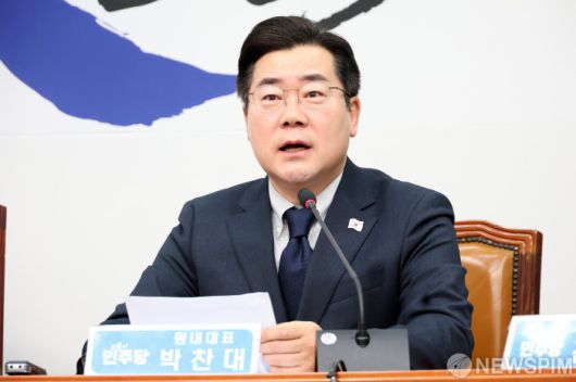 [서울=뉴스핌] 정일구 기자 = 박찬대 더불어민주당 원내대표가 19일 오전 서울 여의도 국회에서 열린 최고위원회의에서 모두발언을 하고 있다. 2025.02.19 mironj19@newspim.com