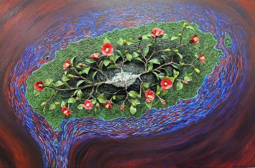 그는 '마음 깊은 곳의 그리움을 불러본다'라는 부제의 이번 전시회에 아크릴 물감과 머리카락, 제주 화산석 등을 활용해 제작한 작품 26점을 선보인다.