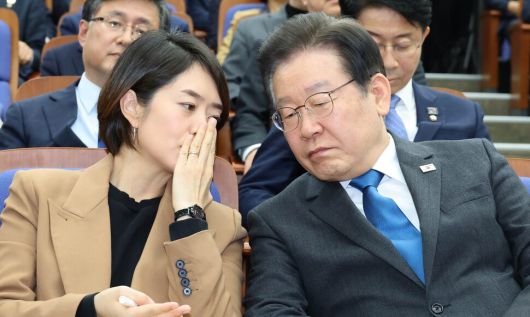 2023년 3월23일 이재명 더불어민주당 대표와 고민정 당시 최고위원이 국회에서 열린 의원총회에서 대화하고 있다. 연합뉴스 |