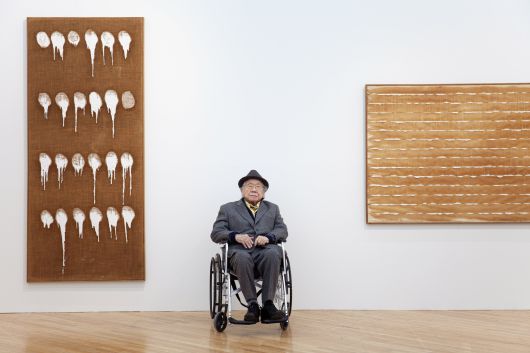 전시장에 휠체어를 타고 나타난 작가 하종현. 사진 남서원. 제공 아트선재센터. ⓒ 2025. Art Sonje Center all rights reserved. |