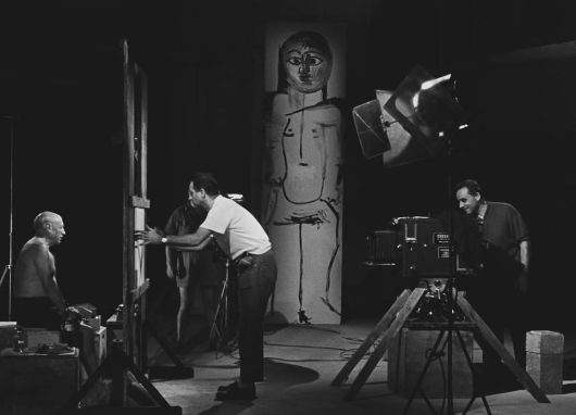 그래도 집중력이 흐트러질 무렵, 카메라는 열중하는 피카소를 비춘다. 반바지만 입은 맨몸의 화가가 ‘초집중’해 짧은 시간에 드로잉을 완성하는 모습, 촬영 감독을 맡은 클로드 르누아르(인상파 화가 르누아르의 손자)도 볼 수 있다.