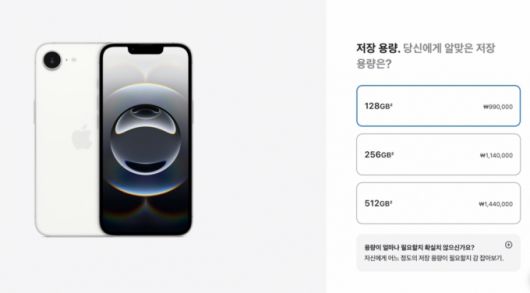 아이폰16e는 128GB, 256GB, 512GB 모델로 출시되고, 출고가는 한국 기준 각각 99만원, 114만원, 144만원이다. 128GB 기준 전작은 출고가가 65만원에 책정됐었다.