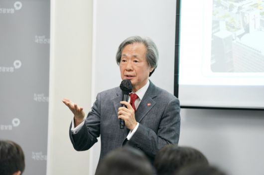 정기석 국민건강보험공단 이사장이 20일 서울 영등포구 건보공단 영등포북부지사에서 기자간담회를 열고 올해 공단 운영 계획 등을 설명하고 있다. 국민건강보험공단 제공 |