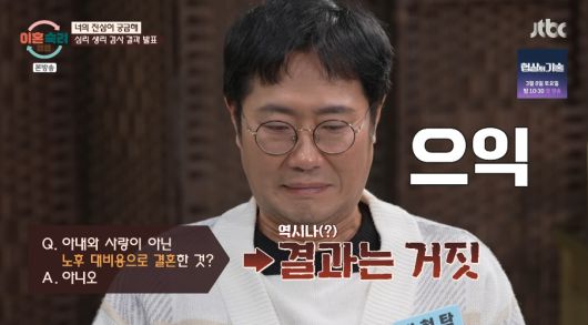 남편은 "양육권을 가져간다면 아내에게 양육비는 받지 않을 것"이라며 "아내가 예전부터 너무 고생을 했다"고 했고, 결국 눈물을 보였다.