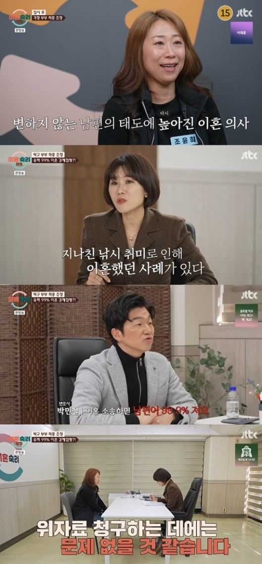 이날 판사는 "혼인 생활을 유지하기 어려울 정도의 취미라면 이혼 사유 가능성이 있다"고 했다. 양나래 변호사 역시 "제가 캠프서 만난 아내 중에 가장 유리한 입장의 아내"라고 응원을 아끼지 않았다.