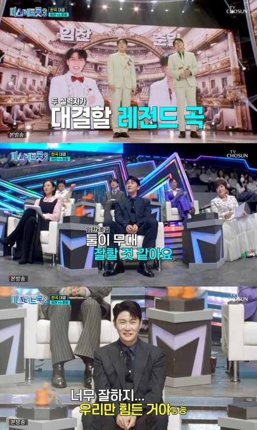 이날 방송에서 임찬은 지목한 대결 상대는 춘길로 밝혀졌고, 이에 장윤정은 "왜 이렇게 어려운 길을 가냐"며 놀라워했고, 영탁은 "임찬이 남자네. 상남자다. 멋있다"며 칭찬해 훈훈함을 자아냈다.