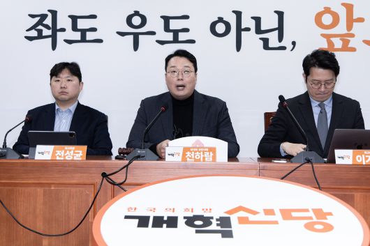 천 원내대표는 이날 기자들과 만나 이 대표가 제안한 야권 원탁회의와 관련해 “이 대표를 대선 주자로 인정하는 대선 연대처럼 해석될 여지가 있다”며 “개혁신당은 당연히 개혁신당 대선을 위한 길을 가야지 이 대표의 대선 연대에 참여할 이유가 뭐가 있겠냐”라고 했다. 천 원내대표는 그러면서 최근 이 대표의 ‘우클릭’ 움직임에 대해 “‘우클릭한다’면서 정작 전 국민 25만원 지급 같은 소비는 소비대로 하고 감세는 감세대로 하는 ‘더블 포퓰리즘’”이라며 “필요한 우클릭은 해야 하지만 고통 분담은 전혀 이야기하지 않고 있다”고 했다. 천 원내대표는 “특별한 사정이 없으면 앞으로도 원탁회의에는 참여하지 않을 생각”이라고 했다.