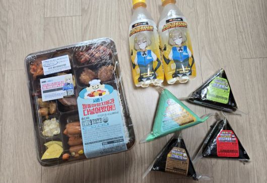 아쉽지만 점심을 해결하기 위해 도시락과 삼각김밥을 구매했다. 참고로 계산할 때 머스탱 보이스를 들을 수 있다. 지점마다 사운드 크기가 다른데 유독 큰 소리로 설정한 지점에서는 점원이 이상한 소리가 난다며 놀라는 해프닝도 있었다. 이미 메이플스토리, 블루 아카이브 등으로 내성이 쌓인 덕분에 민망하진 않았다. 당당하게 구매할 수 있는 레벨이다.