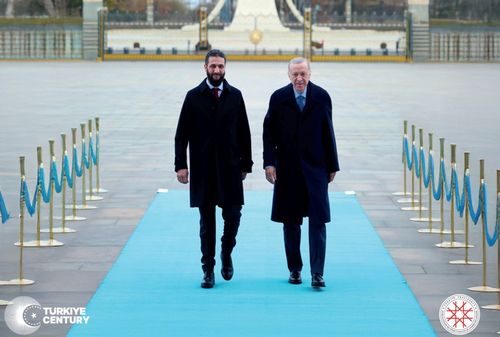 아메드 알샤라 시리아 임시대통령(왼쪽) 곁에 나란히 선 레제프 타이이프 에르도안 대통령 |