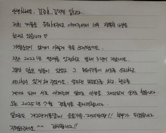 [OSEN=김채연 기자] 코미디언 김준호, 김지민이 오는 7월 백년가약을 맺으며 코미디언 25호 부부가 된다. 손편지로 직접 전한 결혼 소식에 팬들은 물론 대중도 큰 축하를 보내고 있다.