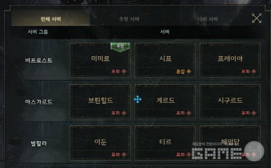 전 서버 포화와 혼잡을 보인 레전드 오브 이미르 첫날 오픈 당시 모습. /게임와이 촬영 |