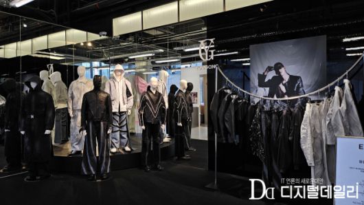 팝업스토어에는 패션업계 관계자와 젊은 디자이너들로 북적였다. 이번 전시에 참여한 브랜드는 ▲랩폼(LABFORME) ▲유강(YOOGANG) ▲포어링(FORUSRING)이다. 신진 디자이너들이 직접 방문객에게 브랜드 콘셉트를 설명하는 모습이 인상적이다.