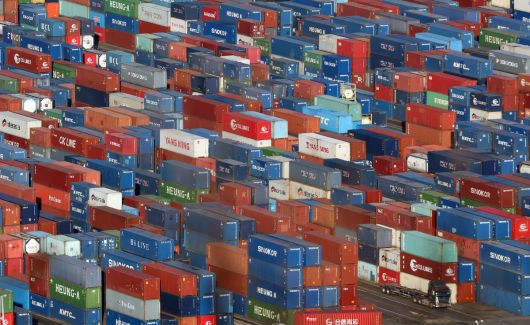 부산 남구 감만부두 야적장에 수출입 컨테이너가 쌓여 있다. 뉴시스 |