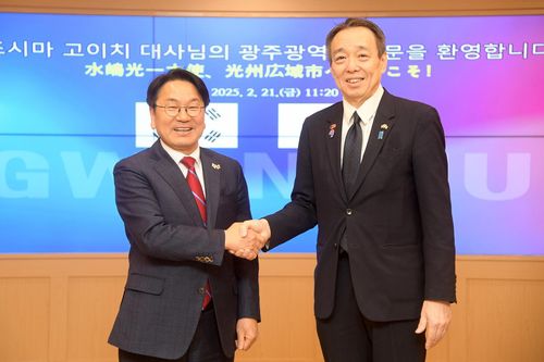 강 시장과 미즈시마 대사는 이날 광주시청 비즈니스룸에서 면담을 갖고 협력 방안을 주고받았다.