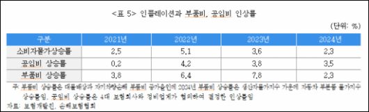 공임비는 정부와 정비업계가 협의해 연간 공임 인상률을 결정하지만 정비업계와 보험업계 간 의견 차이가 크다. 일반적으로 수리비 중 22%를 차지하는 공임비는 2022년 4.2%, 2023년 3.8% 상승했고 지난해엔 3.5%의 인상률이 적용됐다. 시간당 공임 인상률의 경우 기존엔 국토교통부가 결정했지만 2022년부터 자동차보험 보험정비협의회에서 정하는 것으로 변경됐다. 지난해 인상률 협의 당시 정비업계는 4.5%를 제시했고 보험업계는 1.7%를 제시하면서 갈등이 생기기도 했다.