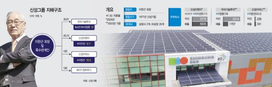 신성그룹 지배구조는 그동안 많은 변화가 있었다. 효율적 사업 구조를 갖추기 위해 사업부문을 여러 번 재편했다. 2008년엔 지주회사 체제를 도입하기도 했다. 당시 인적분할을 통해 신성이엔지(클린룸장비)와 신성에프에이(자동화 설비)를 신설하고, 신성홀딩스라는 지주사를 만들었다. 하지만 이후에도 많은 변화가 있었다. 2016년 말에는 인적분할로 신설했던 신성이엔지와 신성에프에이를 다시 흡수해 단일 회사 체제로 전환했다. 사명도 여러 번 바뀌었다. 신성홀딩스에서 신성솔라에너지로, 다시 신성이엔지로 사명이 변경됐다.