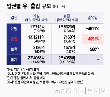 업권별 유·출입 규모/그래픽=윤선정 |