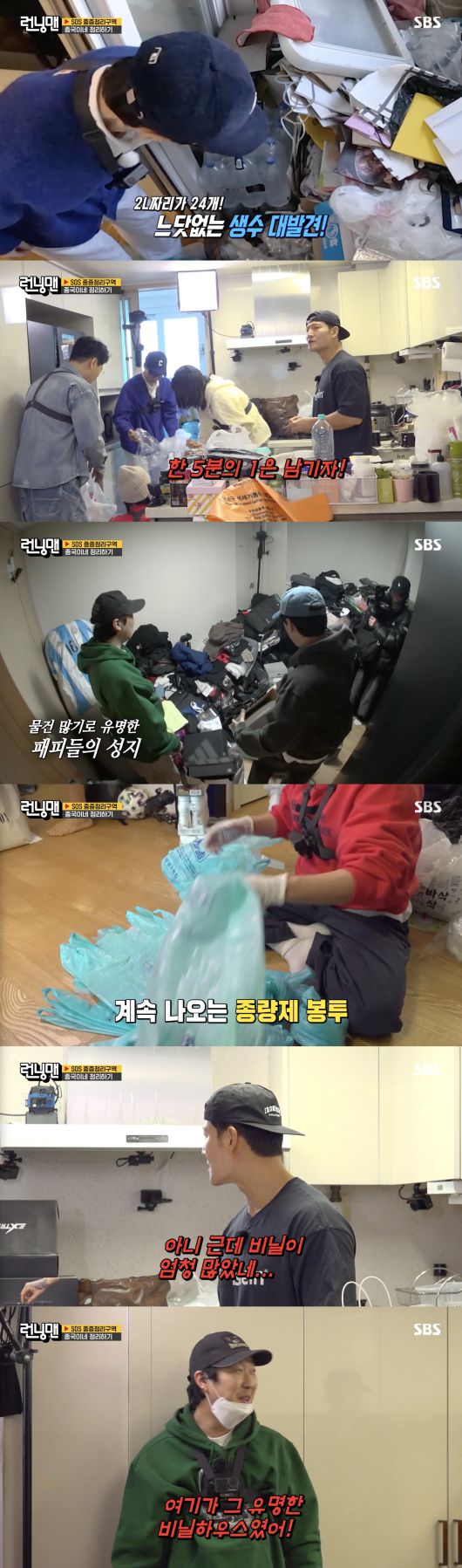 김종국은 멤버들이 정리하는 모습을 보며 "비닐이 엄청 많았네"라고 놀랐고, 멤버들은 "네가 다 모은 거야"라고 했다.