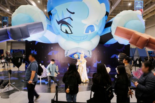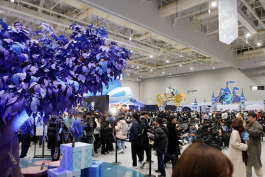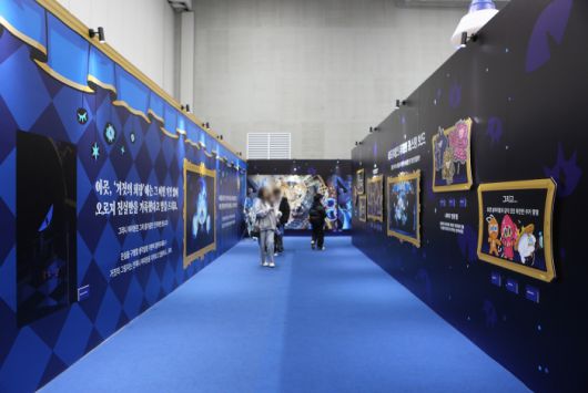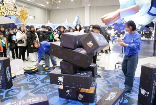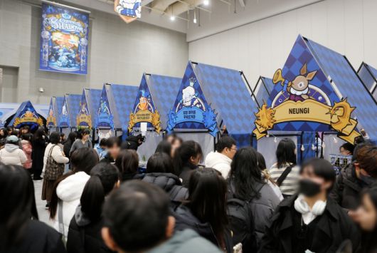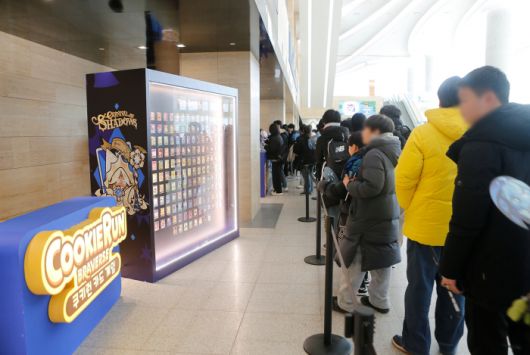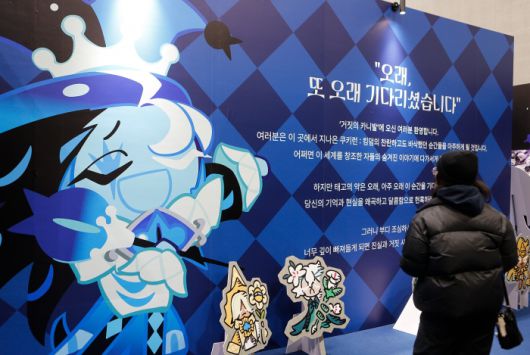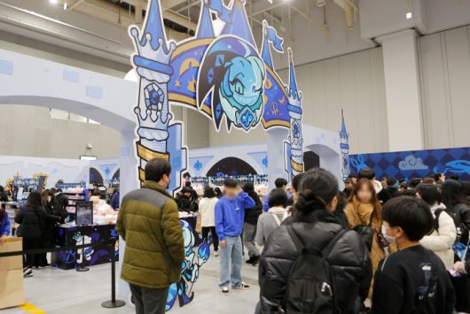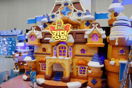 이날 수원 컨벤션 센터는 이른 시간부터 찾아온 ‘쿠키런’ 팬들로 가득했다. 입장권 현장 판매 물량이 행사 시작 전에 일찌감치 매진될 정도였다. 행사장 곳곳에는 안전사고에 대비하기 위한 스태프들이 배치돼 있었다. 안내 데스크에서 웰컴키트와 스탬프투어 리플렛을 받은 후 내부로 들어서면 웅장한 쿠키 왕국이 모습을 드러내고, 안쪽에 자리잡은 쉐도우밀크 쿠키 거대 조형물이 관람객을 맞이한다.
