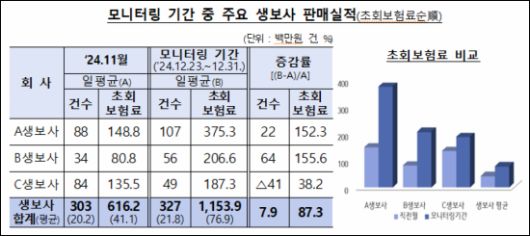 금감원은 지난해 12월23일부터 31일까지 15개 생보사에 대한 일단위 모니터링을 실시한 결과 11개사(73.3%)가 직전월 판매건수나 초회보험료를 초과 판매하는 등 절판마케팅을 했다고 24일 밝혔다.