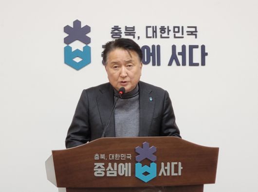 김영환 충북도지사가 24일 도청 브리핑룸에서 도립 파크골프장 조성에 관해 설명하고 있다. 윤교근 기자 |