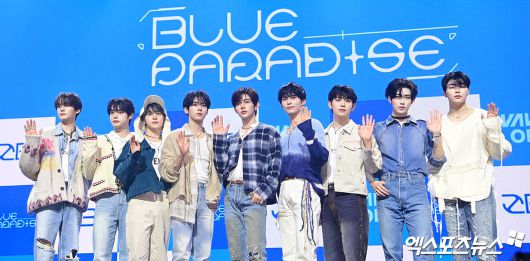제로베이스원(성한빈, 김지웅, 장하오, 석매튜, 김태래, 리키, 김규빈, 박건욱, 한유진)은 24일 오후 서울 용산구 블루스퀘어 마스터카드홀에서 미니 5집 '블루 파라다이스(BLUE PARADISE)' 발매 기념 쇼케이스를 개최했다.