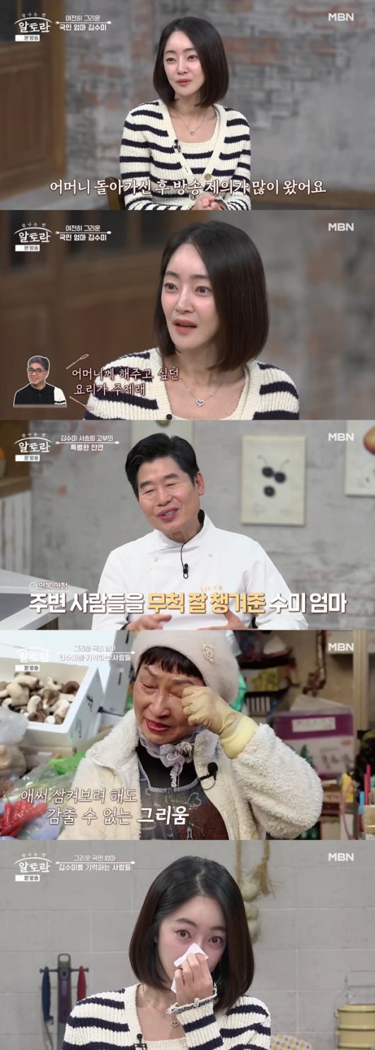 김수미가 생전 자주 찾았던 남대문 시장 상인들 역시 "허전하다. 돌아가셨을 때 깜짝 놀랐다. 어머니 생각 많이 하겠다"라고 마음을 전했다. 이어 "진짜 언니 같은 분이셨다. 너무 그립다"라며 고인을 추억하며 서효림과 상인들은 눈시울을 붉혔다.