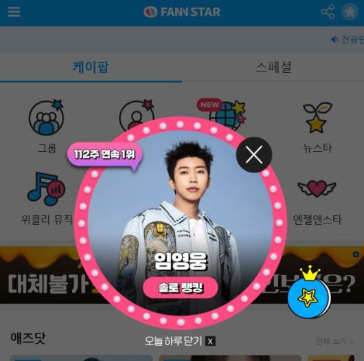 임영웅의 1위 소식과 함께 투표에 참여한 팬들이 '팬앤스타' 공식 문자메시지함으로 축하 인사를 보냈다. 닉네임 '웅떡웅성'은 "임영웅 어디서나 빛나는 가수"라고 전했다.