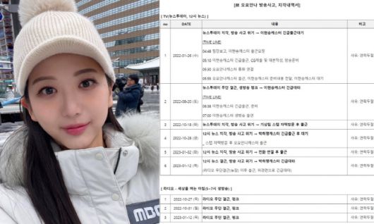 또 "오요안나씨는 새벽 4시반까지 매일 출근해야하는 살인적인 뉴스투데이 담당에서 벗어난 이후에는 방송사고를 내거나 지각을 한 사실이 없다"며 "오요안나씨의 전임 기상캐스터도 두 번이나 아침뉴스 날씨 시간을 못 맞춰 지각으로 물의를 빚은 사실이 있다"고 강조했다.