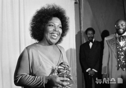 [로스앤젤레스=AP/뉴시스] 미국 팝스타 로베타 플랙이 1974년 3월4일 로스앤젤레스에서 열린 그래미 시상식에 참석해 '킬링 미 소프트리 위드 히즈 송'으로 '올해의 노래' 트로피를 받고 기뻐하고 있다. 자료사진. 2025.02.25 |