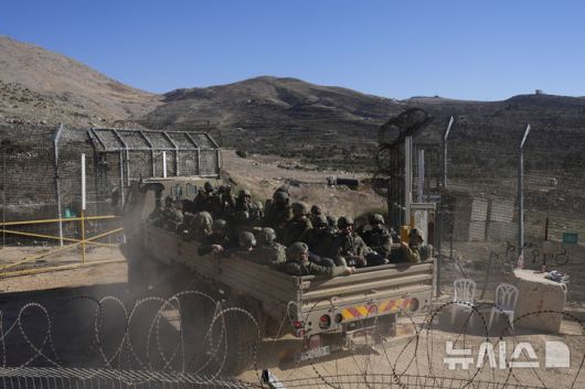 [마즈달샴스=AP/뉴시스] 이스라엘 군인들이 2024년 12월 18일 골란고원의 마즈달샴스 지역에서 보안 울타리를 넘어 시리아와의 완충지대인 '알파 라인'으로 진입하고 있다. 2025.02.25. |