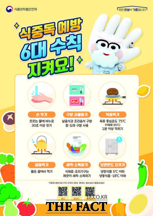 식중독 예방을 위해서는 △흐르는 물에 비누를 사용하여 30초 이상 깨끗하게 손씻기 △끓인 물 마시기 △음식물 충분히 익혀 먹기 △칼·도마 구분해서 사용하기 △식재료·조리기구는 깨끗이 세척·소독하기 등의 수칙을 준수해야 한다.