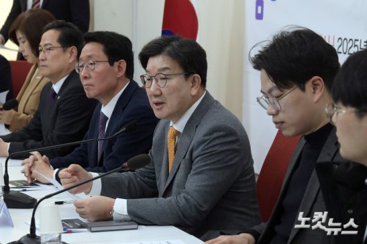 국민의힘 권성동 원내대표가 25일 서울 여의도 국회에서 열린 연금개혁 청년간담회에서 발언을 하고 있다.