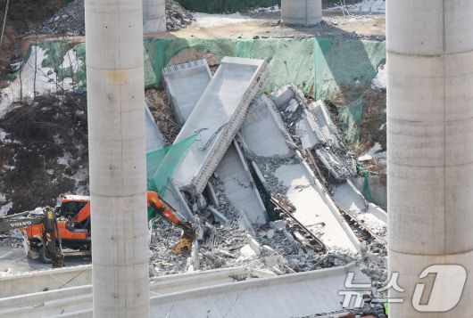 (서울=뉴스1) 김동규 신현우 기자 = 25일 건설 현장에서 붕괴사고가 발생한 서울세종고속도로 세종~안성 구간은 2026년 말까지 공사 완료가 계획돼 있는 고속도로다. 이날 기준 공정률은 60%다.