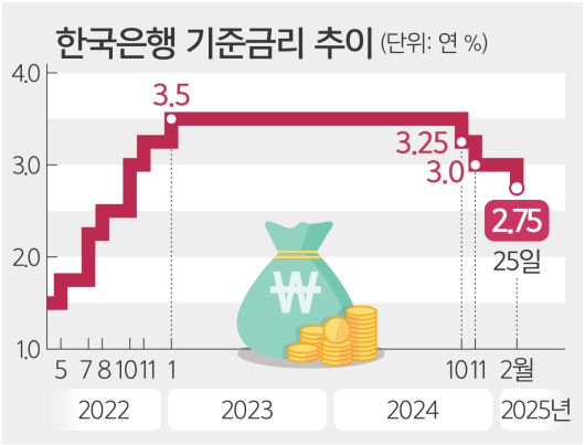 이후 비상계엄과 윤석열 대통령 탄핵 사태로 소비·투자 등 내수 위축 우려가 더 커지자 3연속 인하를 통한 경기 부양을 촉구하는 목소리도 높았다. 하지만 원·달러 환율이 1480원대로 급등하자 1월에는 금리를 동결하며 숨 고르기에 나섰다.